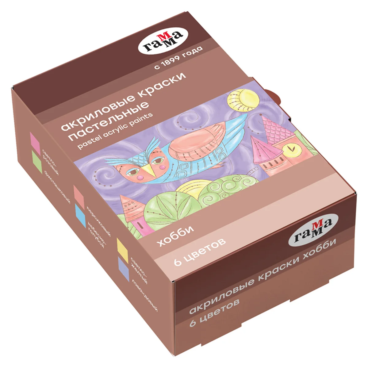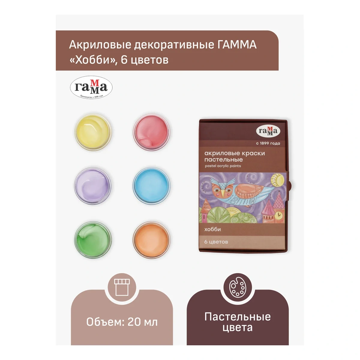 Краски акриловые декоративные Гамма 'Хобби', 06 цветов, 20мл, картон. упаковка, пастельные цвета