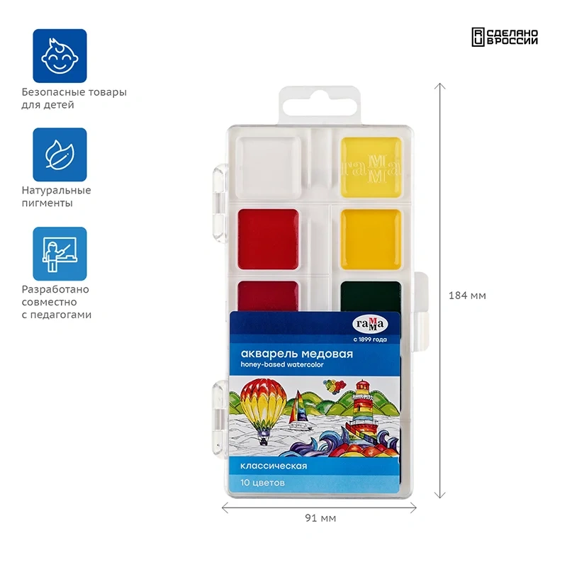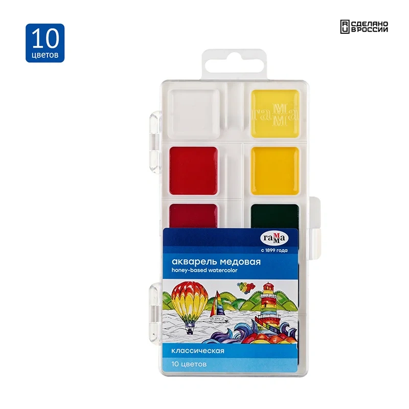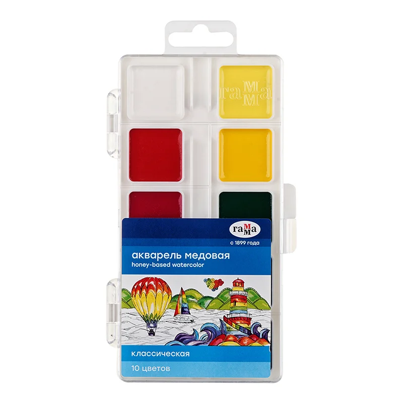 Акварель Гамма 'Классическая', медовая, 10 цветов, без кисти, пластик. упак., европодвес NEW