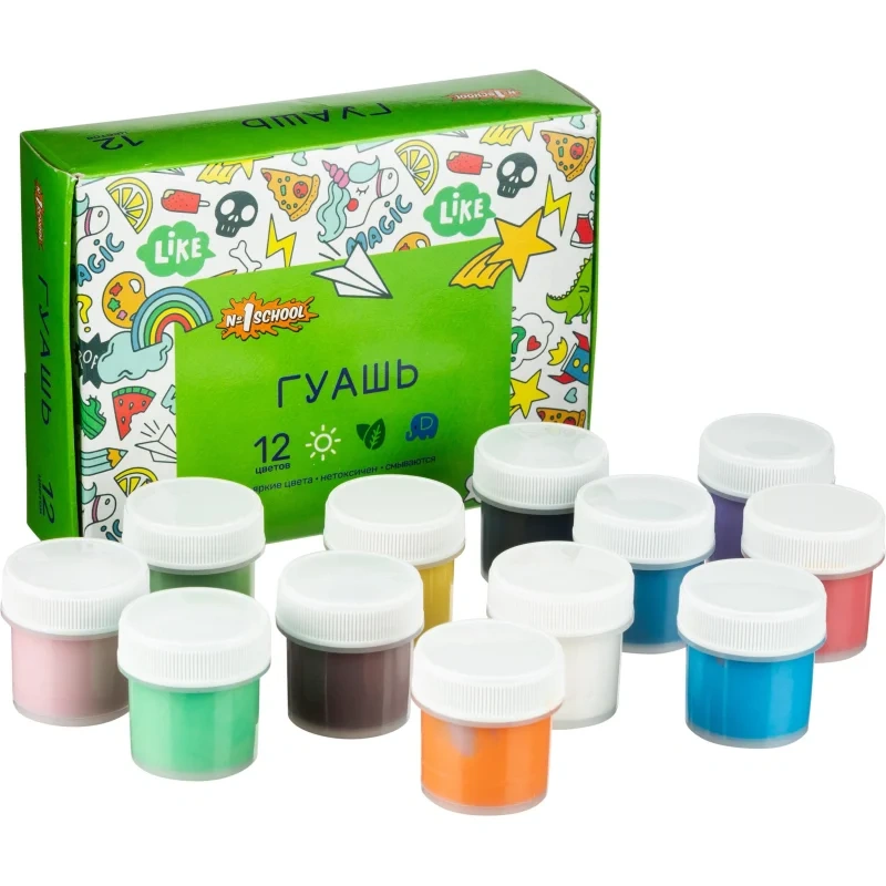 Гуашь №1 School Отличник 12 цв., 10 мл