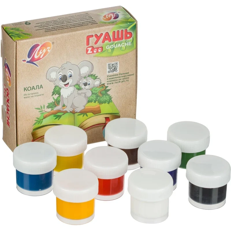 Гуашь ЛУЧ 'Zoo', 9 цветов по 15 мл, без кисти, картонная упаковка, 25С 1532-08