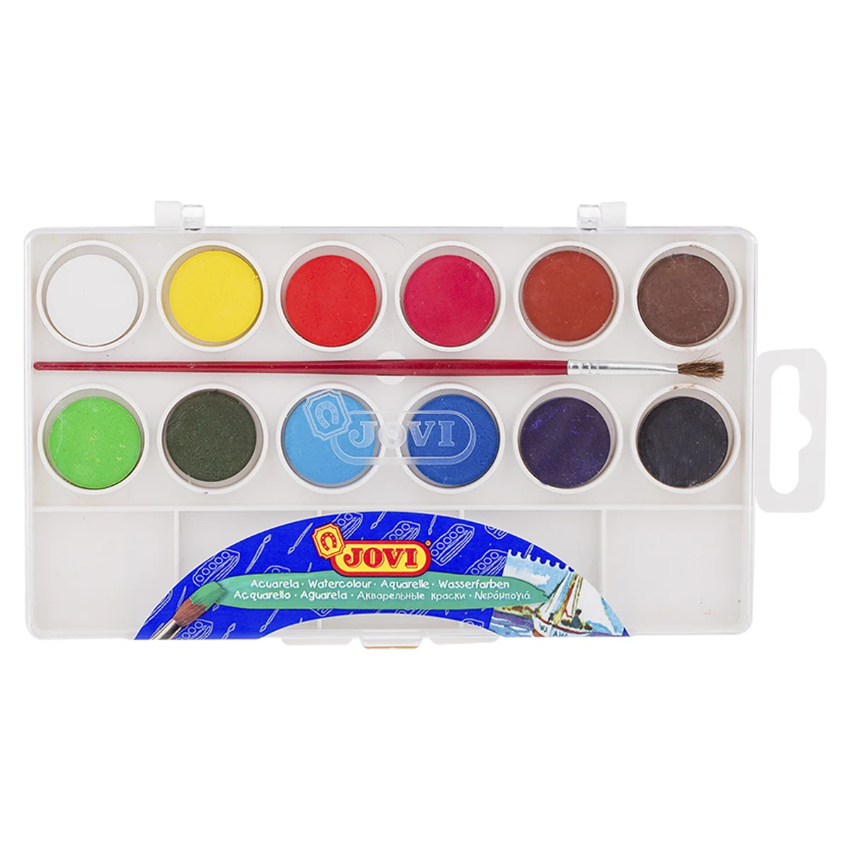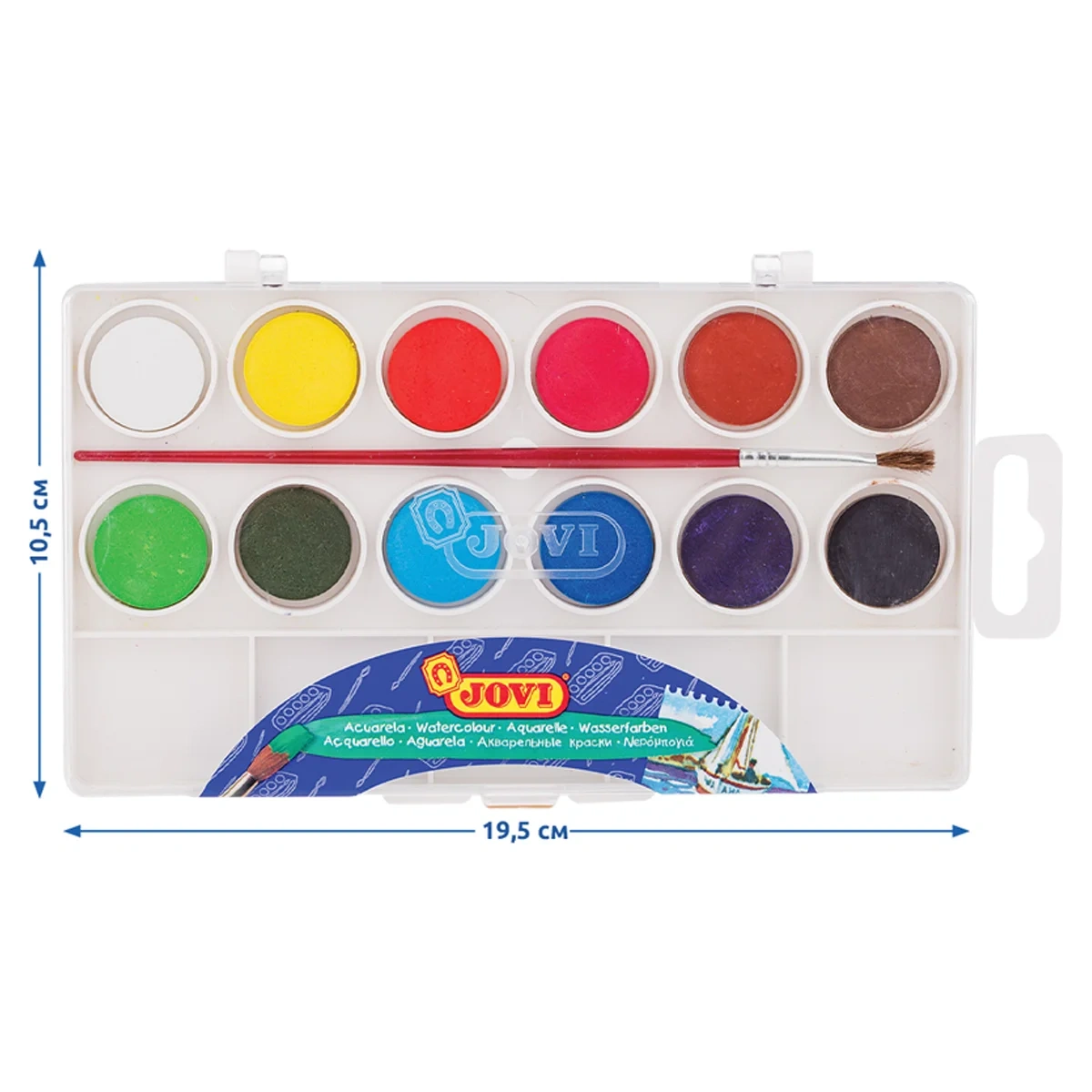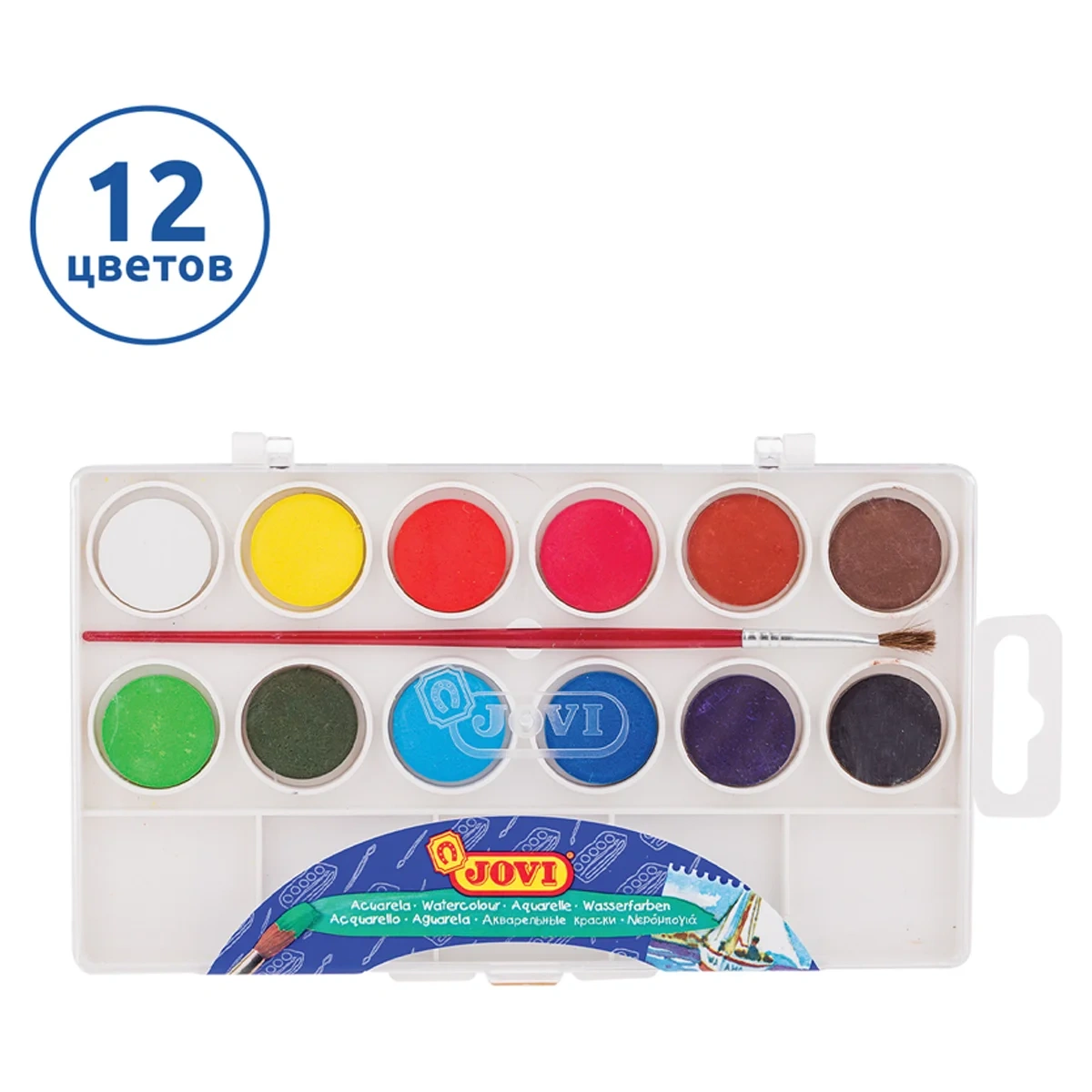 Акварель JOVI, 12 цветов, малые кюветы, с кистью, с палитрой, пластик, европодвес