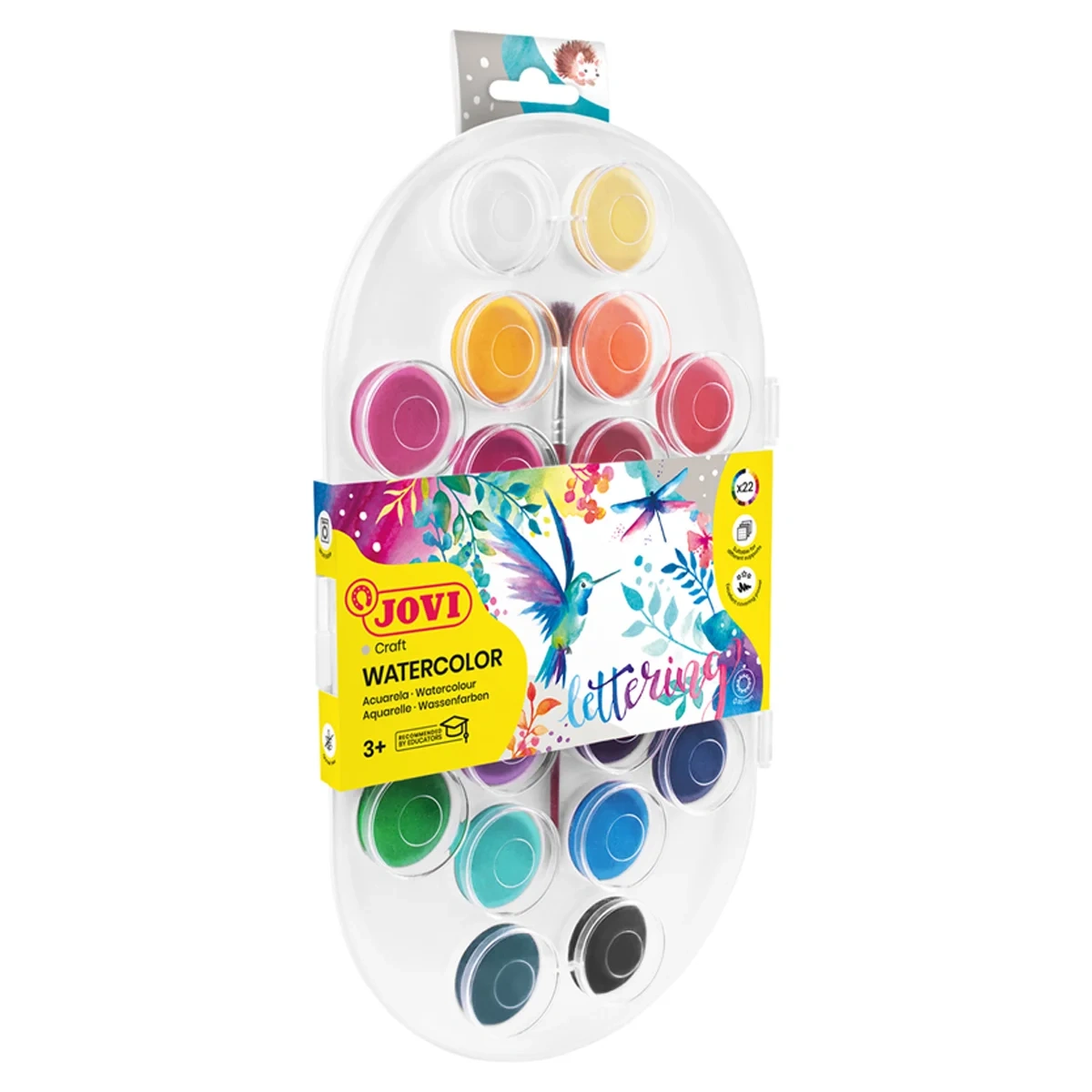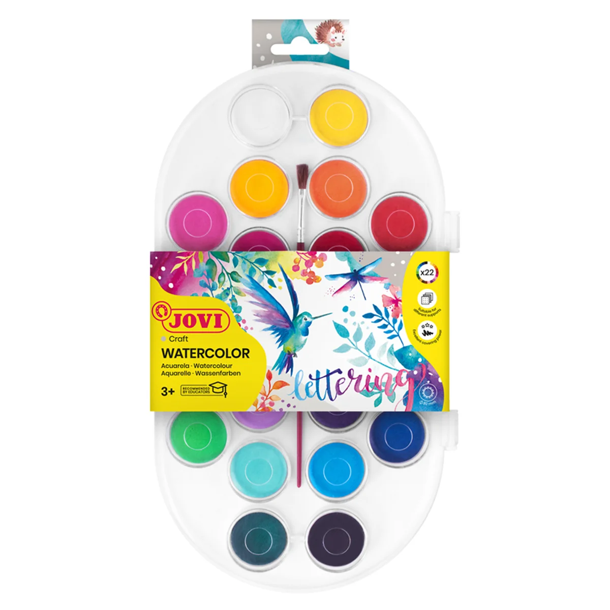 Акварель JOVI, 22 цвета, большие кюветы, с кистью, пластик