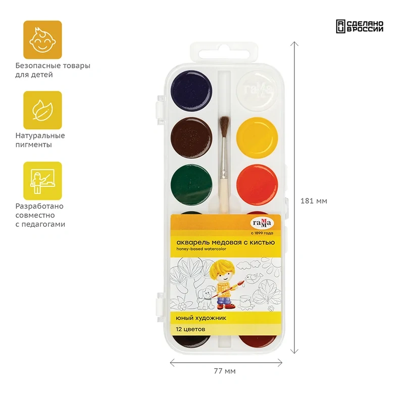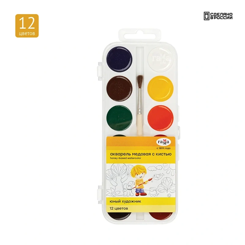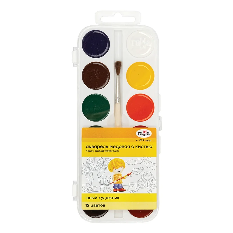 Акварель Гамма Юный художник 12 цветов, с кистью