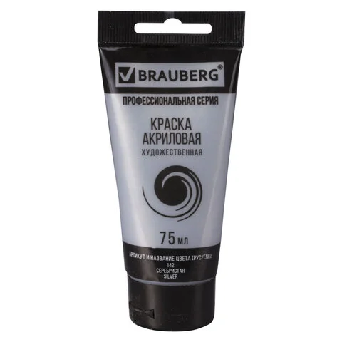 Краска акриловая художественная Brauberg серебристая, туба 75мл