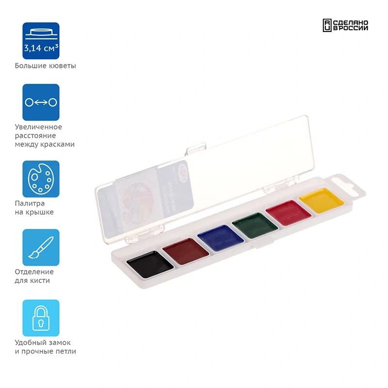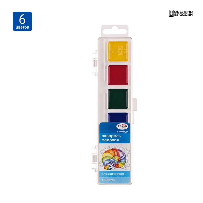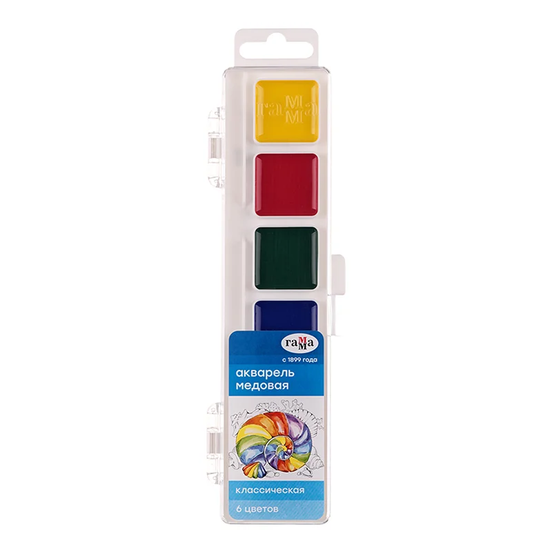 Акварель Гамма 'Классическая', медовая, 06 цветов, без кисти, пластик. упак., европодвес NEW
