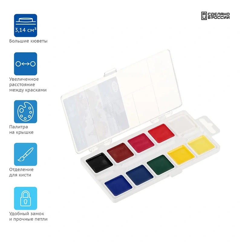 Акварель Гамма Юный художник 10 цветов, без кисти