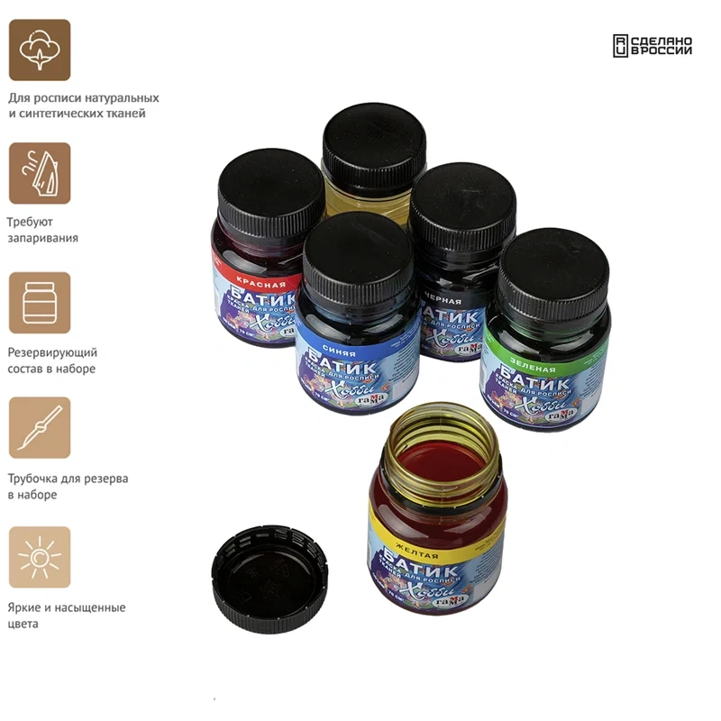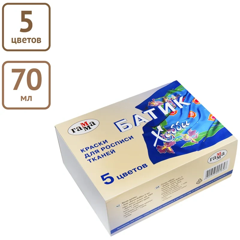 Краска для росписи тканей Гамма Батик-Хобби 5 цветов по 70мл