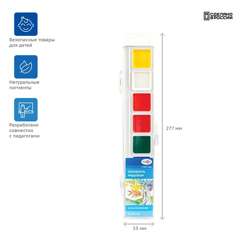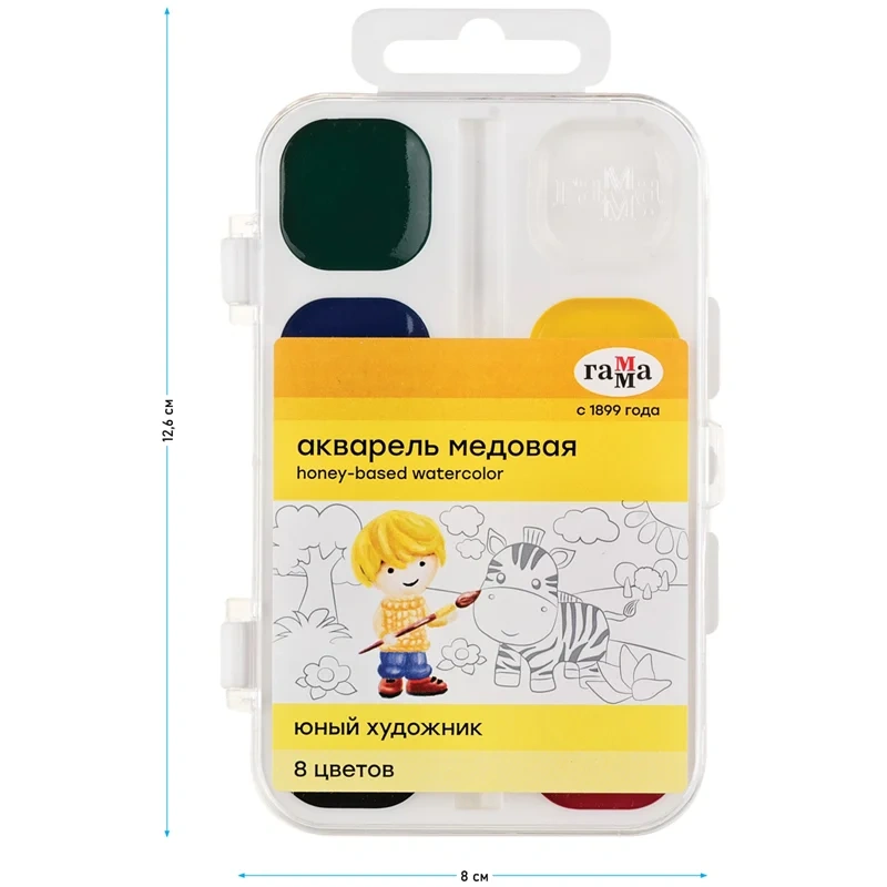 Краски акварельные ГАММА 'Юный Художник', 8 цветов, медовые, пластиковая коробка, без кисти, 212069