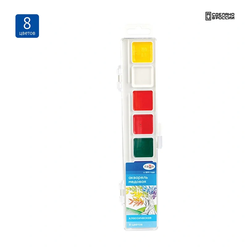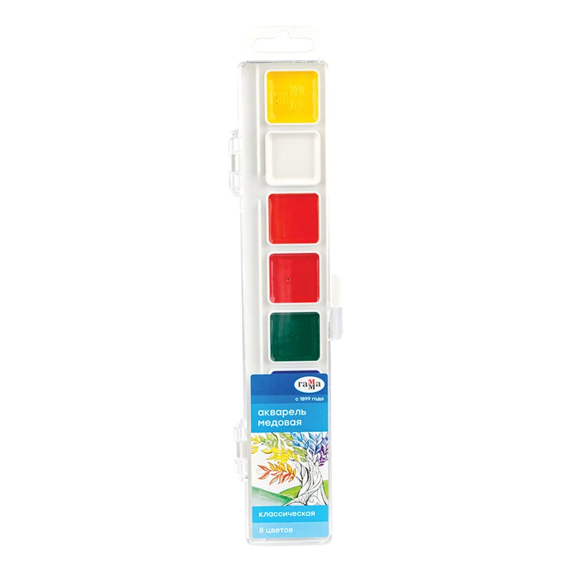 Акварель Гамма 'Классическая', медовая, 08 цветов, без кисти, пластик. упак., европодвес NEW