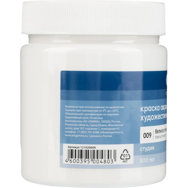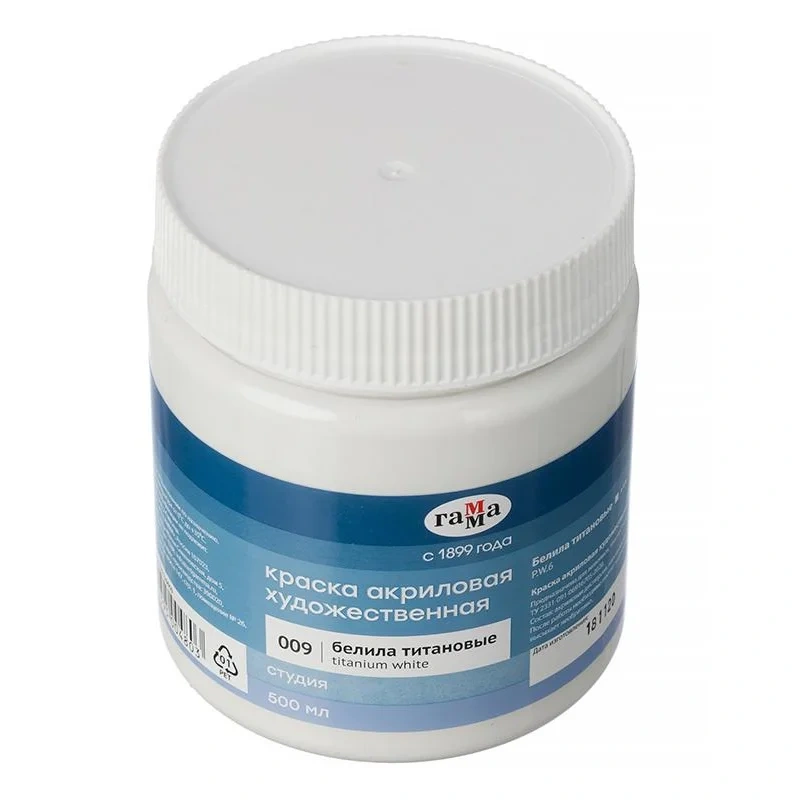 Краска акриловая художественная Гамма Студия белила титановые, 500мл