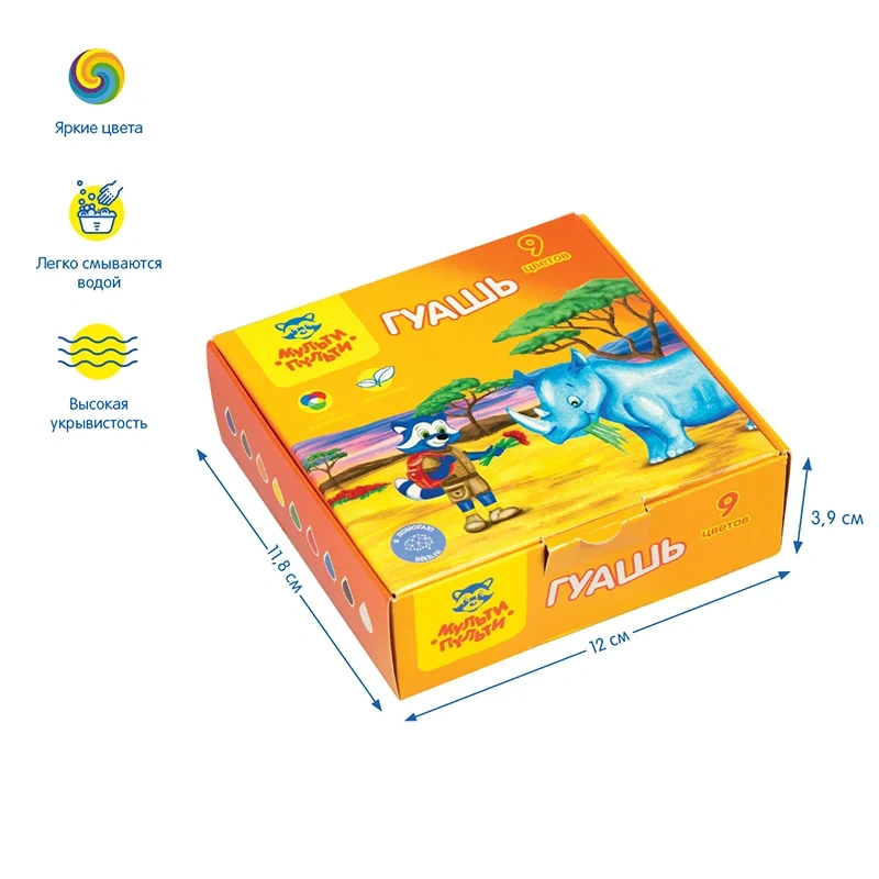 Гуашь Мульти-Пульти 'Енот в Африке', 09 цветов, 20мл, картон