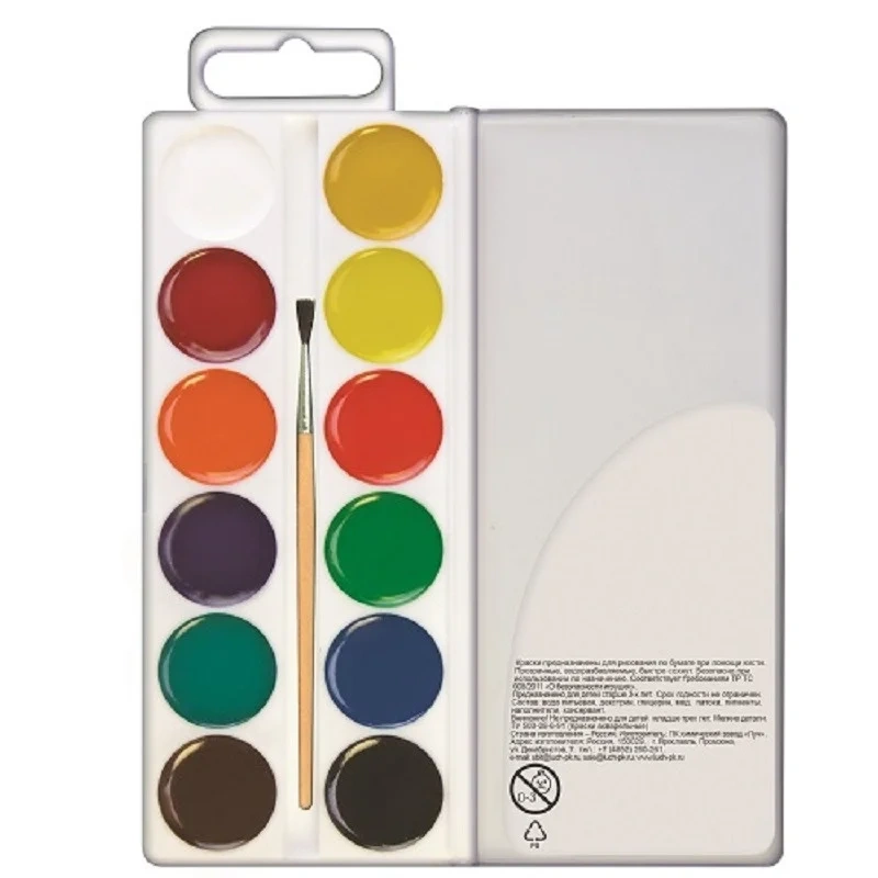 Акварель Луч Классика 12 цветов, медовые, с кистью