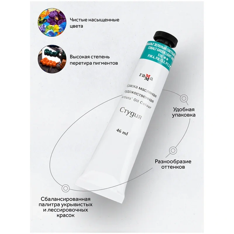 Краска масляная художественная Гамма Студия 9 цветов по 46мл