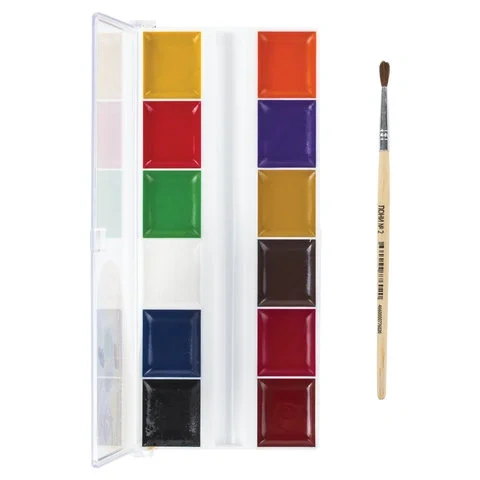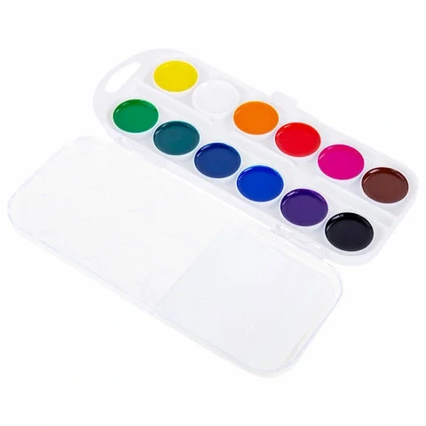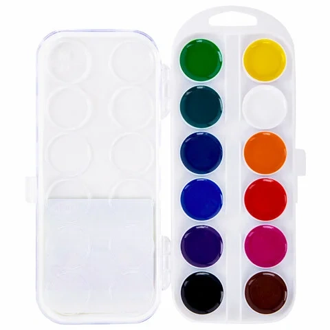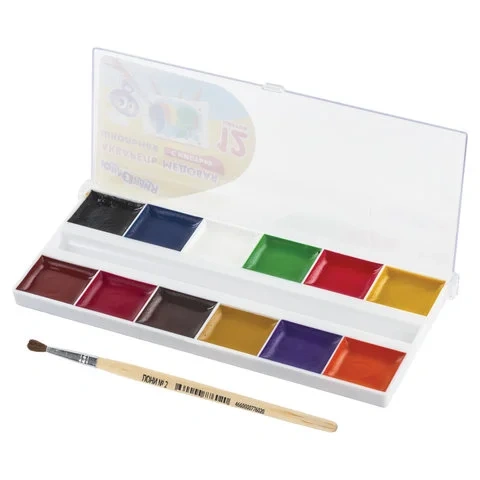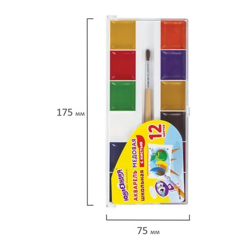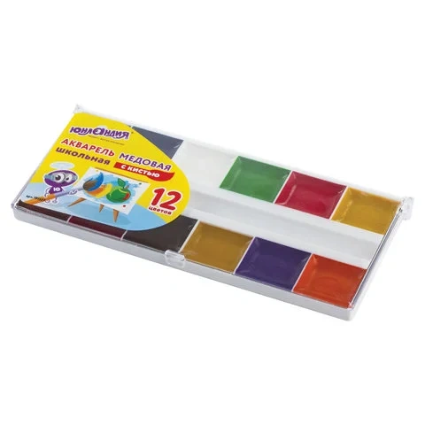 Краски акварельные ЮНЛАНДИЯ 'ШКОЛЬНЫЕ', 12 цветов, медовые, С КИСТЬЮ, пластиковая коробка, 191527