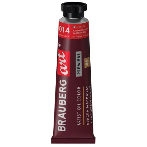 Краска масляная художественная BRAUBERG ART PREMIERE, 46 мл, профессиональная серия, КАДМИЙ КРАСНЫЙ,
