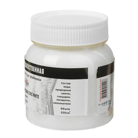 Гуашь художественная 1 шт., ГАММА, 220 мл, белила цинковые, 0.20.В220.001