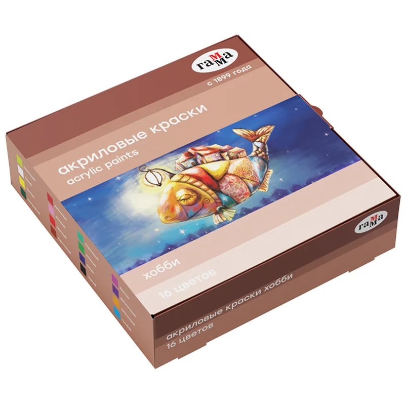 Краски акриловые декоративные Гамма 'Хобби', 16 цветов, 20мл, картон. упаковка