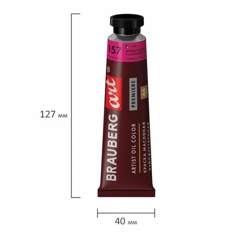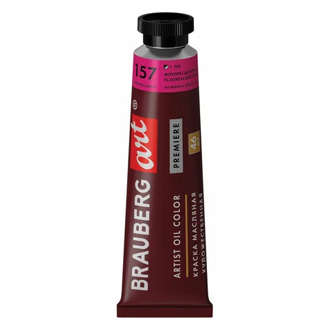 Краска масляная художественная BRAUBERG ART PREMIERE, 46 мл, профессиональная серия, ФЛУОРЕСЦЕНТНАЯ