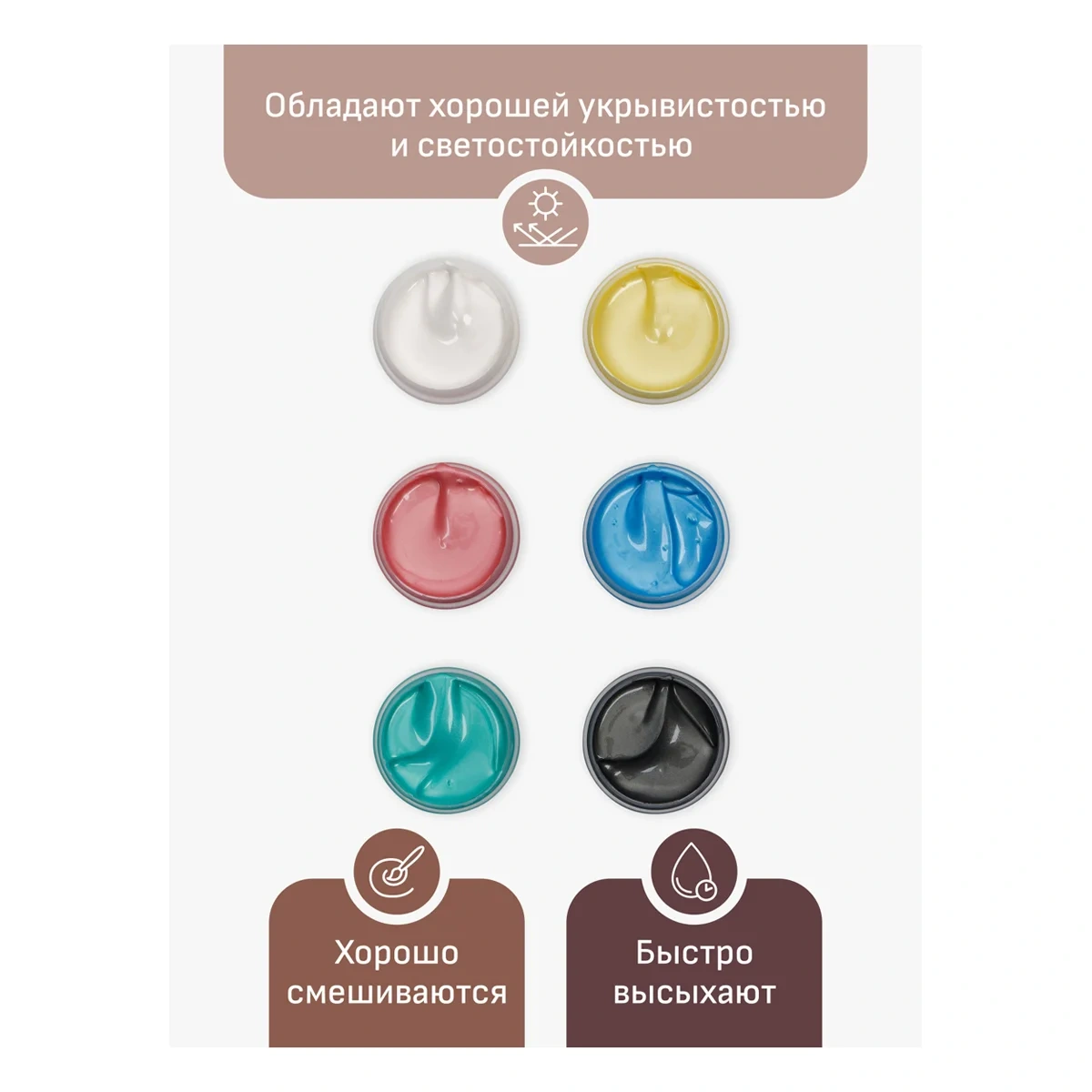 Краски акриловые декоративные Гамма 'Хобби', 06 цветов, 20мл, картон. упаковка