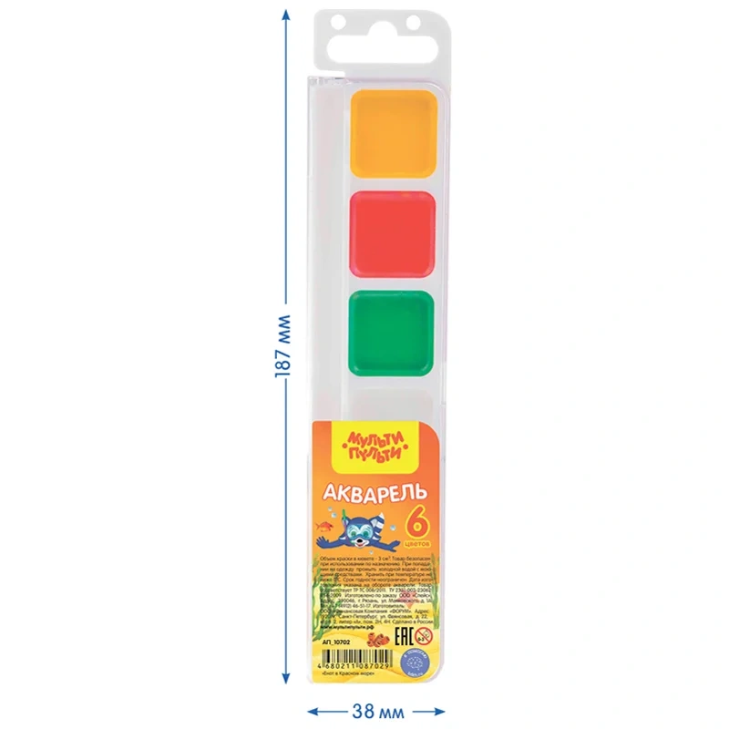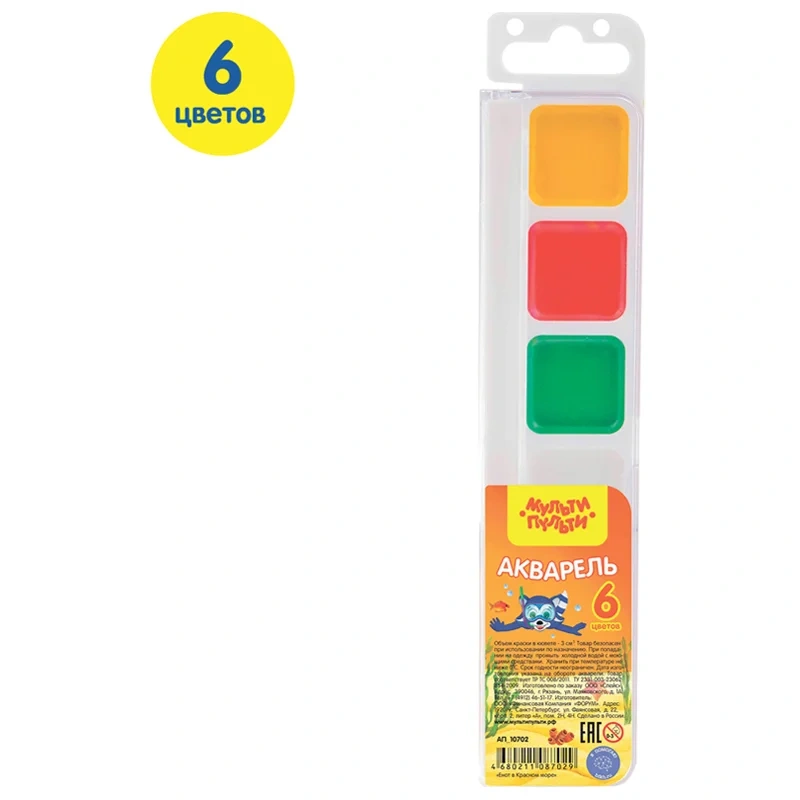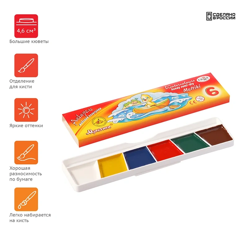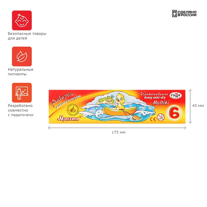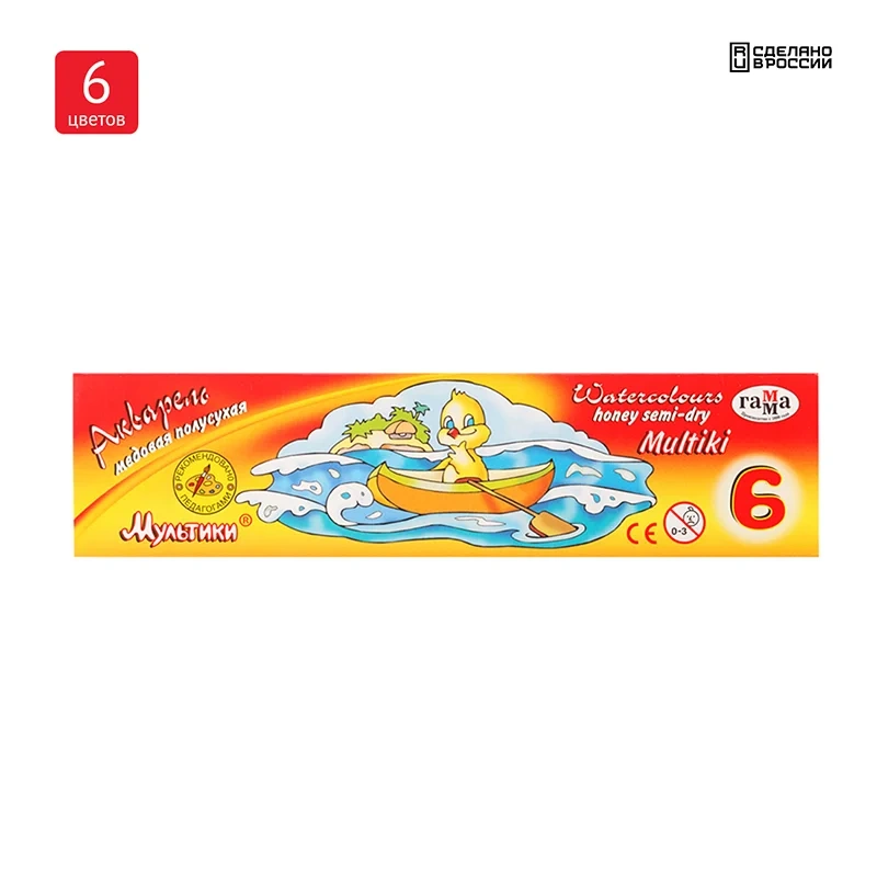 Акварель Гамма Мультики 6 цветов, медовая, без кисти