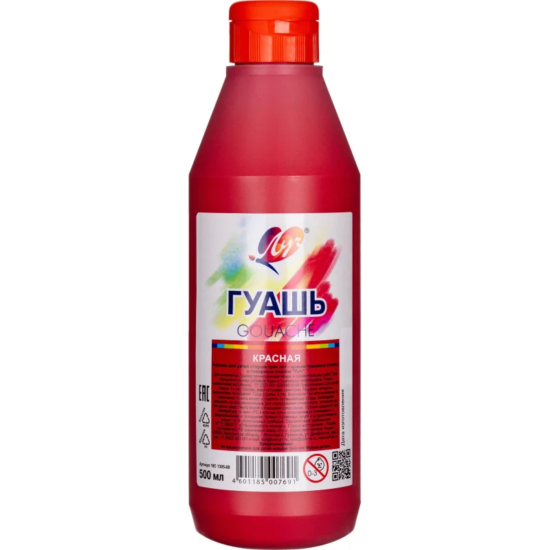 Гуашь Луч Классика красная, бутылка с дозатором, 500мл