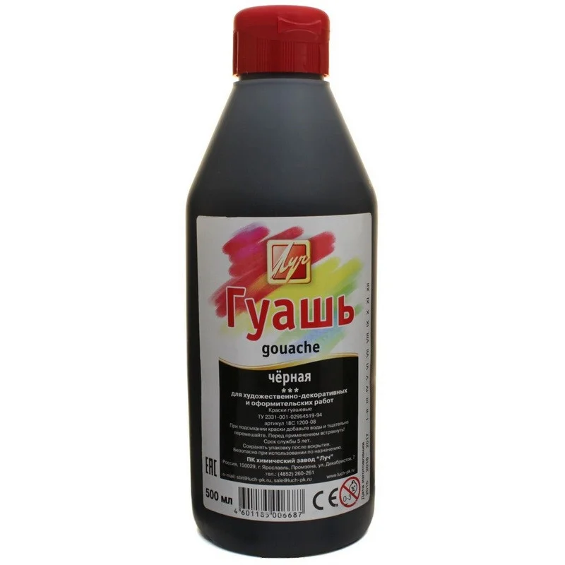 Гуашь Луч Классика черная, бутылка с дозатором, 500мл