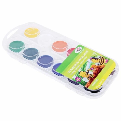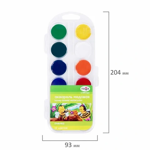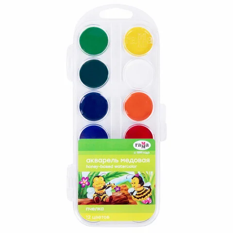 Акварель Гамма Пчелка 12 цветов, медовые, без кисти, 212040