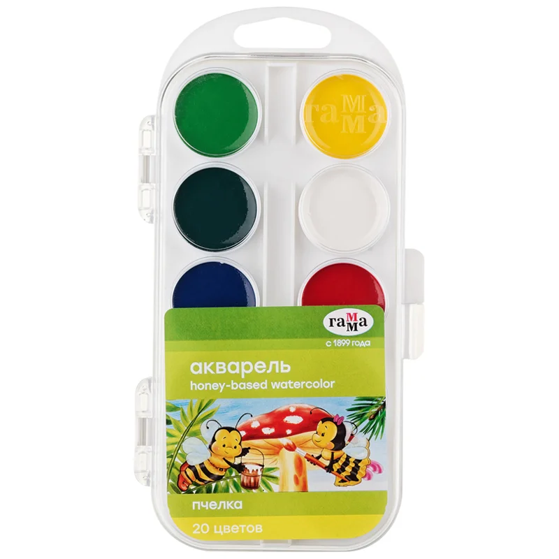 Акварель Гамма 'Пчелка NEW', медовая, 20 цветов, без кисти, пластик. упак., европодвес