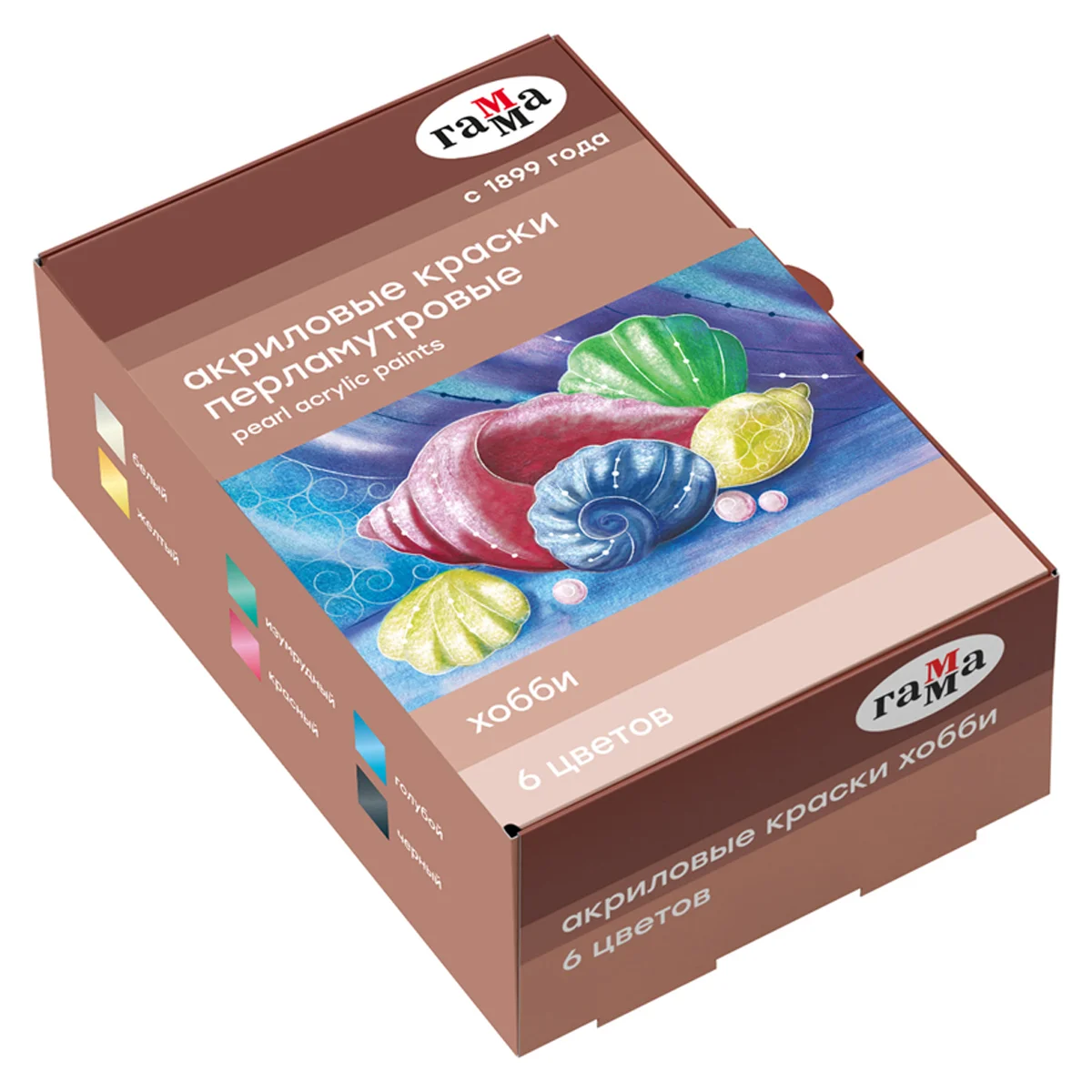 Краски акриловые декоративные Гамма 'Хобби', 06 цветов, 20мл, картон. упаковка, перламутр.