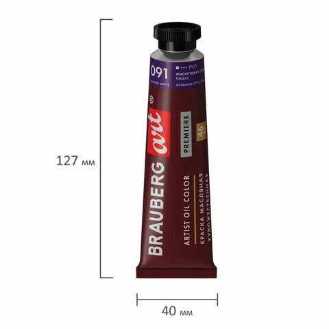 Краска масляная художественная BRAUBERG ART PREMIERE, 46 мл, профессиональная серия, ФИОЛЕТОВАЯ ТЕМН