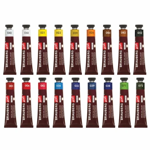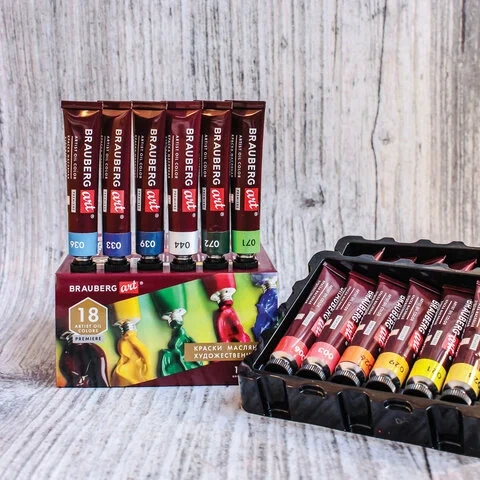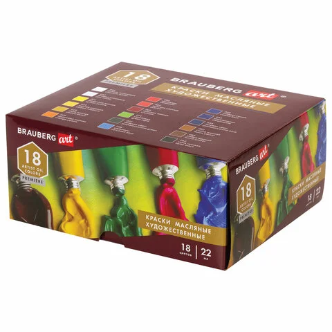 Краски масляные художественные BRAUBERG ART PREMIERE, 18 цветов по 22 мл, профессиональная серия, в