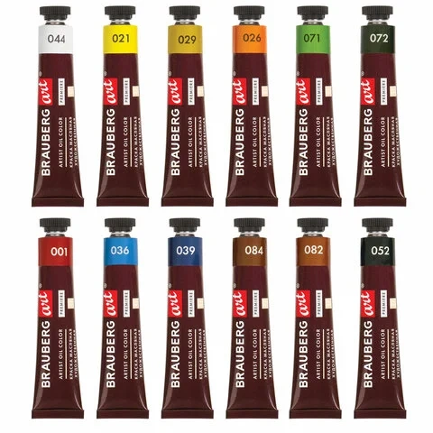 Краски масляные художественные BRAUBERG ART PREMIERE, 12 цветов по 22 мл, профессиональная серия, в