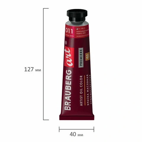 Краска масляная художественная BRAUBERG ART PREMIERE, 46 мл, профессиональная серия, ПУРПУРНАЯ КРАСН