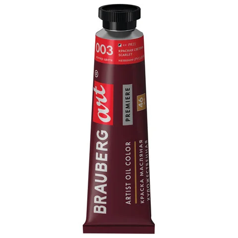 Краска масляная художественная BRAUBERG ART PREMIERE, 46 мл, профессиональная серия, КРАСНАЯ СВЕТЛАЯ