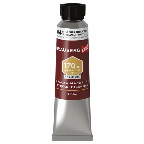 Краска масляная художественная BRAUBERG ART PREMIERE 170 мл, профессиональная серия, БЕЛИЛА ТИТАНОВЫ