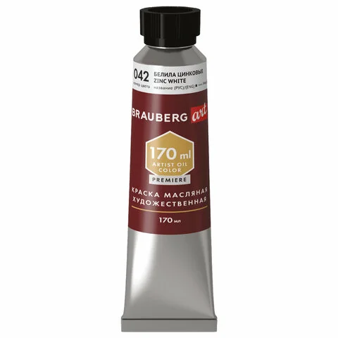 Краска масляная художественная BRAUBERG ART PREMIERE 170 мл, профессиональная серия, БЕЛИЛА ЦИНКОВЫЕ