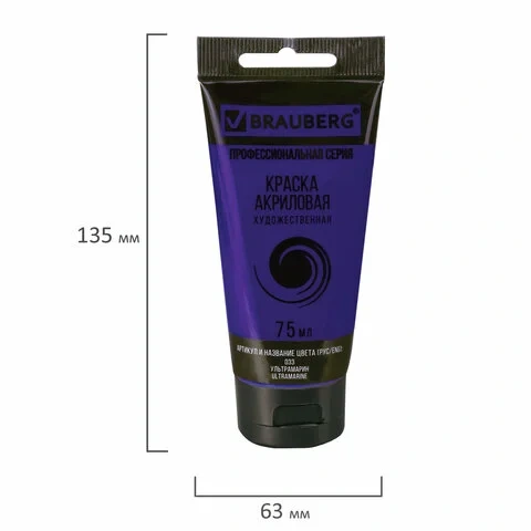 Краска акриловая художественная Brauberg ультрамарин, туба 75мл