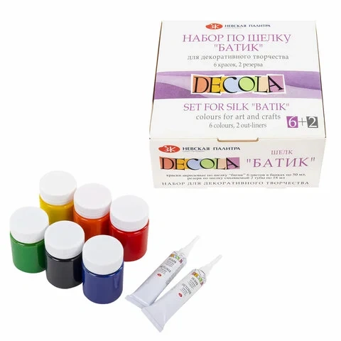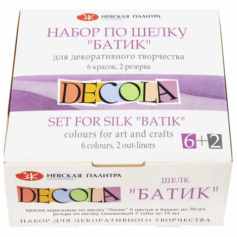 Краска акриловая по ткани Decola Батик 6 цветов по 50мл, резерв 2 тубы по 18 мл, 444144
