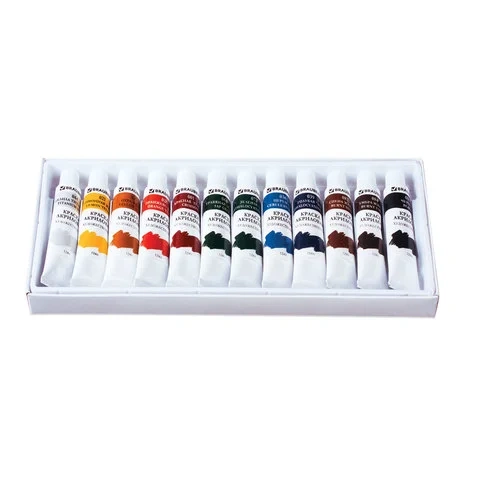 Краска акриловая художественная Brauberg 12 цветов по 12мл, в тубах