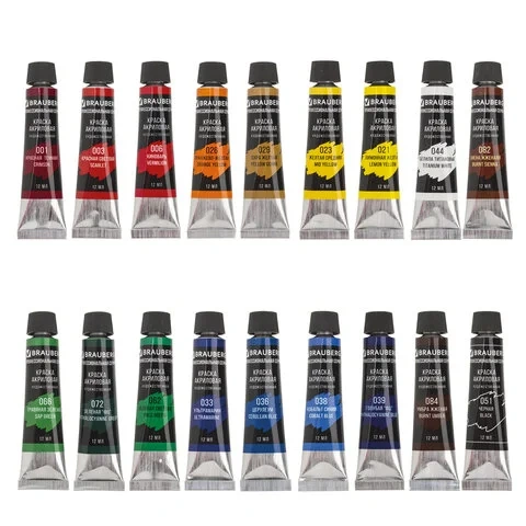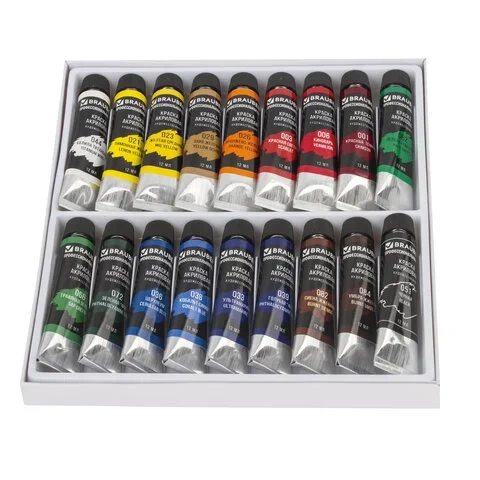 Краска акриловая художественная Brauberg профессиональная серия 18 цветов по 12мл, в тубах