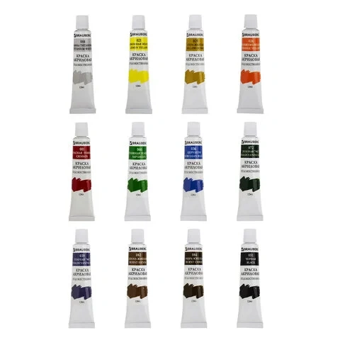 Краска акриловая художественная Brauberg 24шт х75мл, 8 цветов, в тубах