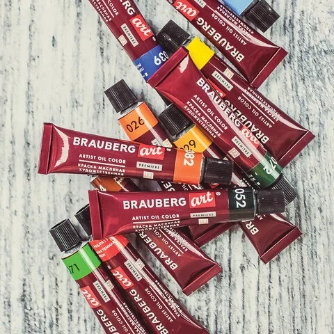 Краски масляные художественные BRAUBERG ART PREMIERE, 12 цветов по 12 мл, профессиональная серия, в