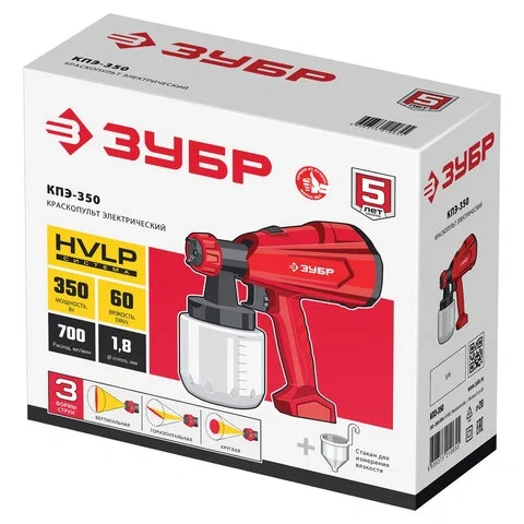 Краскопульт Зубр ЗУБР КПЭ-350 350Вт, краскоперенос 700 мл/мин, 0.8л, сопло 1.8 мм