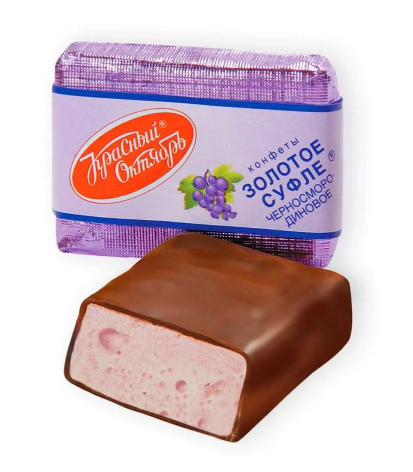Конфеты шоколадные Красный Октябрь «Золотое суфле черносмородиновое» 200 г — это великолепный десерт, созданный из нежного суфле, покрытого тонким слоем шоколадной глазури. Изумительный аромат и сочный вкус черной смородины в сочетании с воздушной текстурой подарят невероятное наслаждение ценителям сладких лакомств.