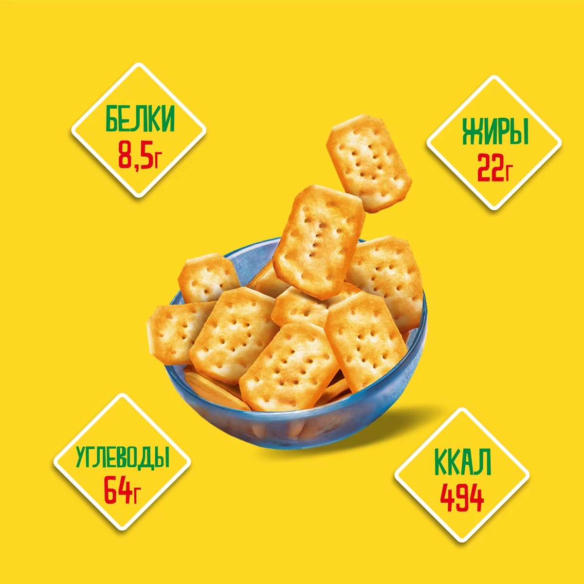 Приготовлен по традиционной рецептуре из натуральных ингредиентов. Благодаря особой текстуре крекеры хрустят и тают во рту. Мини-снеки станут сытным перекусом, а также отличным дополнением к пенным напиткам. Их можно брать в дорогу, а можно использовать и в кулинарии: добавлять в супы и салаты.