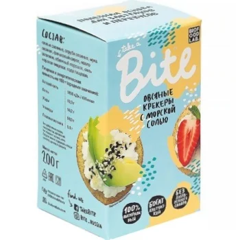 Овсяные крекеры Take a Bite - это питательное хрустящее печенье с добавлением морской соли. Упаковка такого полезного лакомства станет отличным перекусом во время перерыва на работе. Крекеры из овсяных хлопьев Take a Bite с морской солью поставляются в красочной и аппетитной коробке. Ее удобно прихватить с собой на пикник, прогулку в парке с друзьями или в поход в кинотеатр.