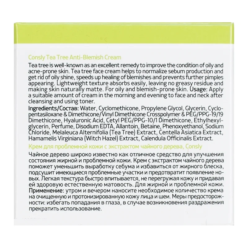 Крем для лица Consly для проблемной кожи с экстрактом чайного дерева, 70мл