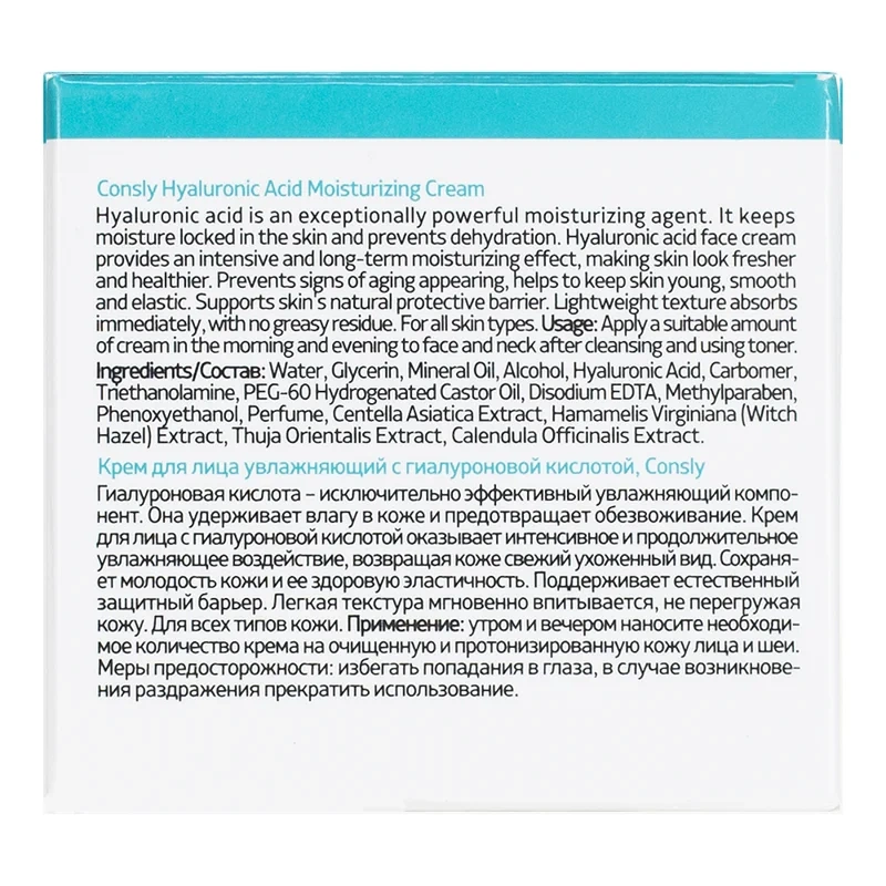 Крем для лица Consly Hyaluronic Acid увлажняющий с гиалуроновой кислотой и бета-глюканом, 70мл