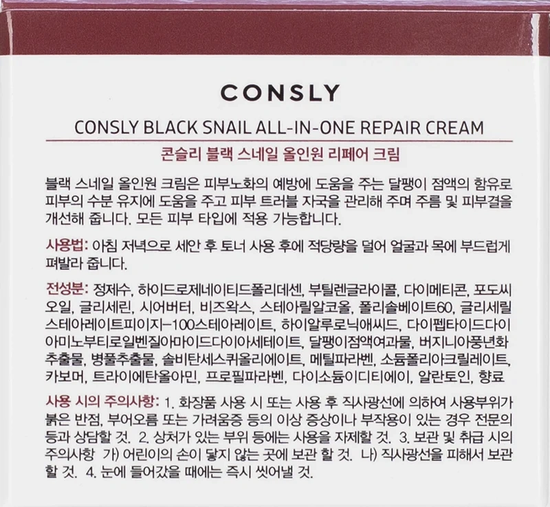 Крем для лица Consly многофункциональный восстанавливающий с муцином черной улитки, 70мл