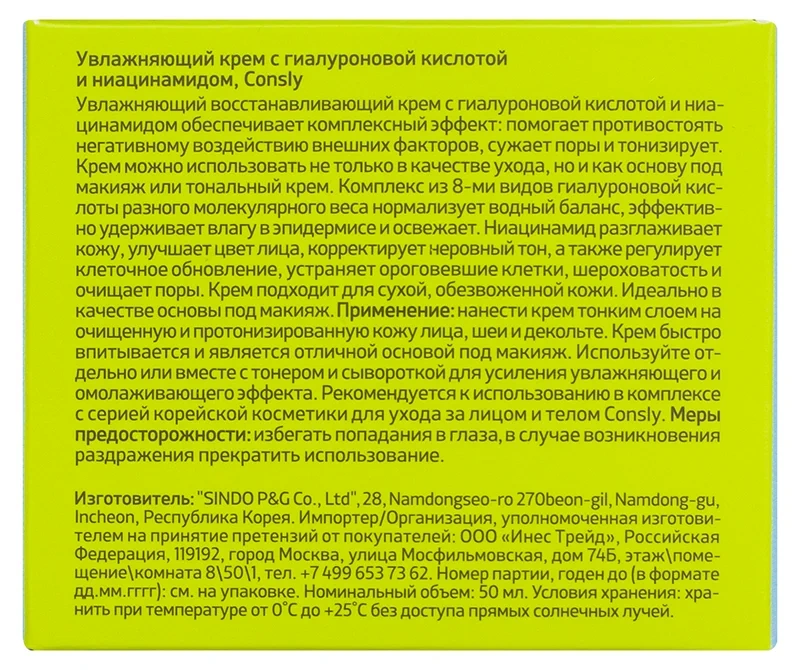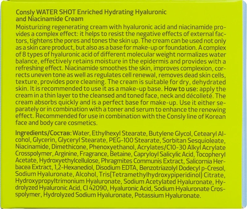 Крем для лица Consly Water Shot Enriched Hydrating с гиалуроном и ниацинамидом, 50мл